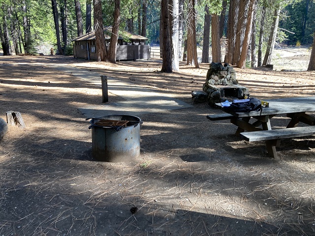 North Grove Campground: This campground has four accessible campsites (#15, #16, #17, #18). Accessible campsites have paved parking, a picnic table, food locker, fire pit, water spigot, and a flat area to pitch a tent. Accessible restrooms with showers are available nearby, at restroom building #3. Route to the restroom, via the campground road, is accessible.Four additional campsites (#8, #11, #67, #73) are generally accessible. Each site has a picnic table, food locker, fire pit, and water spigot. Campsites #8 and #11 have a wide paved parking stall, and the sites are flat, but there may be minor issues with clear space around the site furnishings and the water spigots at these sites are not an accessible design. Both sites lack a formal route to the nearby accessible restroom building with showers (building #2); best access to building #2 is from the accessible parking provided in the group picnic area. Campsites #67 and #73 have unpaved parking stalls constructed of compacted aggregate. Site #67 is flat, but there may be minor issues with clear space around the site furnishings. Site #73 contains a steep slope on the passenger side of the parking stall; best access to the campsite is between the wooden bollards at the front of the parking stall. Campsites #67 and #73 each have a generally accessible route to the campground road, which serves as the primary path to the nearby accessible restroom with showers (building #6). Accessible parking is available at building #6.